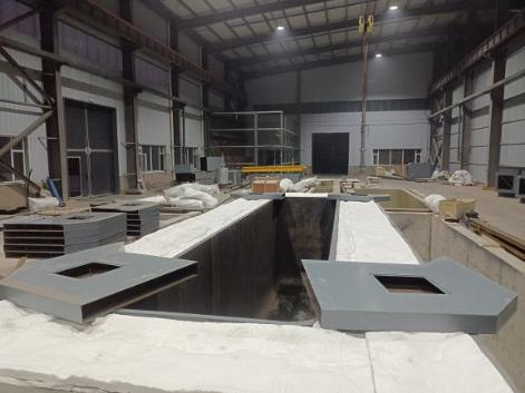Step 2, Disassemble the furnace, expand it by 200mm on each side, and add a gate at the flue outlet (if natural gas heating is no longer used after the renovation, it’s no need to expand the furnace.) 将炉窑拆开,分别往四周各扩大200mm,并在烟道出口位置增加闸门.(如果改造后不再使用天然气加热,则不需要将炉窑扩大.)